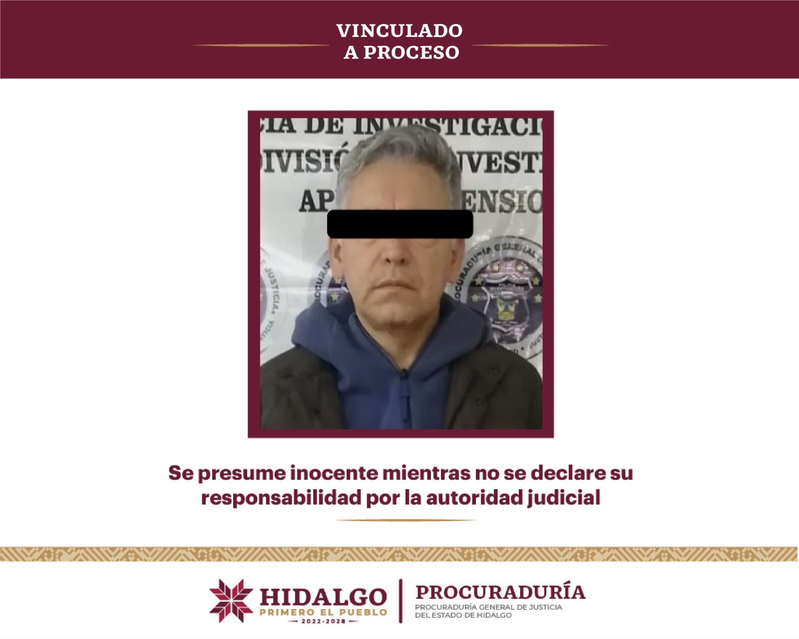 La Procuradur铆a General de Justicia del Estado de Hidalgo (PGJEH) obtuvo la vinculaci贸n a proceso de una persona identificada con las iniciales Pablo N por hechos que la ley tipifica como peculado en agravio de la administraci贸n p煤blica estatal, por un monto superior a los 140 millones de pesos.