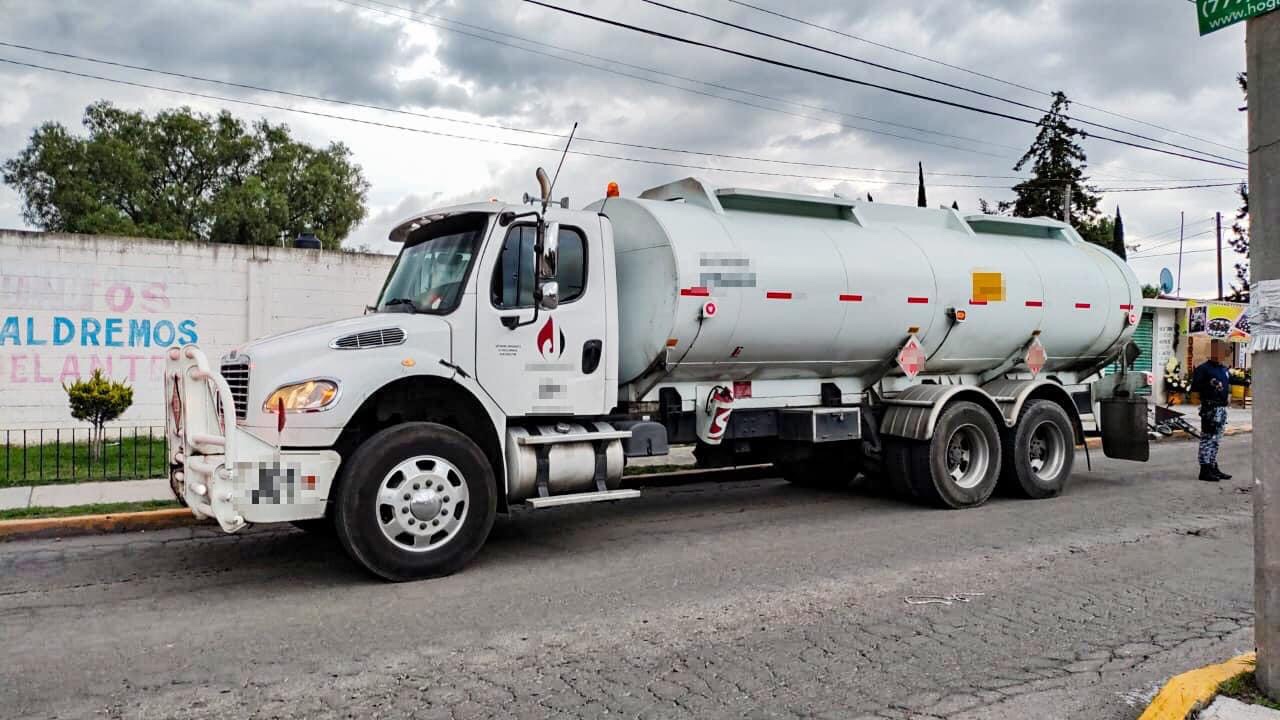 El despliegue policial en el barrio Nacozari de Tizayuca, en una zona colindante con el Estado de México, derivó en la localización del vehículo Freightliner, color blanco, con placas del servicio público federal, cargado con el combustible.