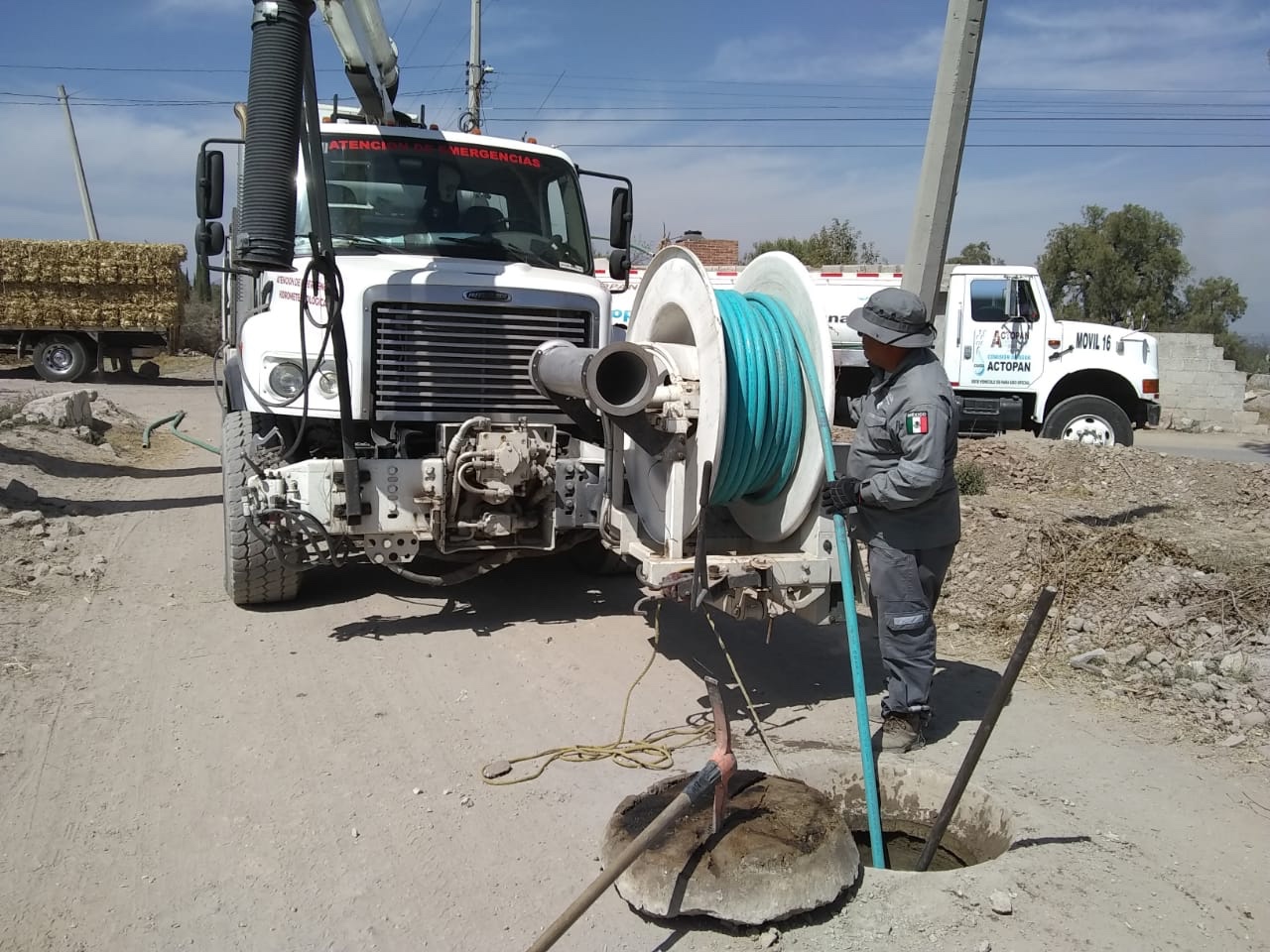 Es importante señalar que para la ejecución de los trabajos referidos fue utilizado un camión hidroneumático tipo Vaccon procedente del Centro Regional de Atención a Emergencias (CRAE) Número 01 Vaso de Cristo, con la participación de un integrante de la Gerencia de Protección a la Infraestructura y Atención a Emergencias (PIAE) y uno de la Dirección Local Hidalgo.