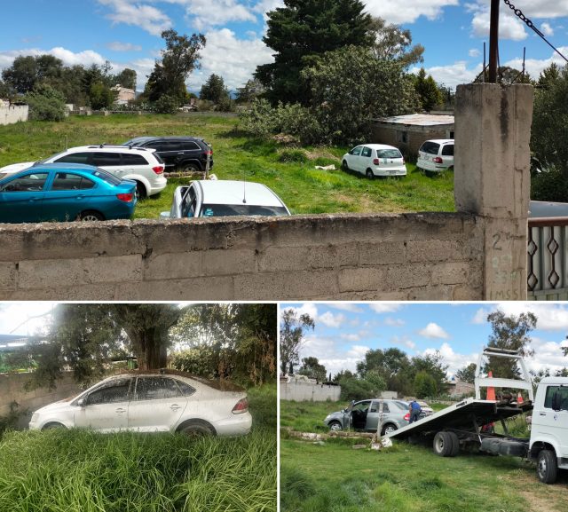 Derivado del seguimiento policial a reportes referentes sobre robos de vehículos, la Secretaría de Seguridad Pública de Hidalgo, a través de la Policía Estatal, detectó un predio y recuperó ocho unidades particulares en el municipio de Apan.
