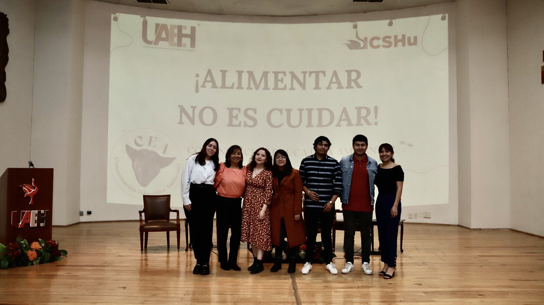 Pachuca de Soto, Hidalgo. -La organización Comunicación Educativa Ambiental (CEA), conformada por las y los alumnos de noveno semestre de la Licenciatura en Comunicación, expuso ante la comunidad estudiantil del Instituto de Ciencias Sociales y Humanidades (ICSHu) la iniciativa “Alimentar no es cuidar”.