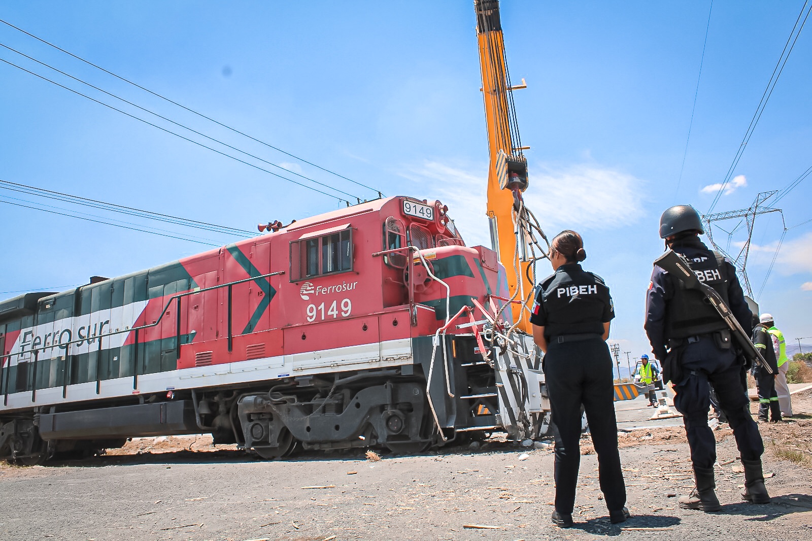 Personal de la Policía Industrial Bancaria del Estado de Hidalgo (PIBEH) adscrito a la Región Siete, con sede en Ciudad Sahagún, custodia desde la noche de ayer el lugar en donde se realizan los trabajos de encarrilamiento del tren que se impactó contra un tráiler en el bulevar Las Torres de Pachuca. Los primeros reportes indican que el percance se suscitó cerca de las 23 horas, luego de que el chofer del tractocamión tratara de ganarle el paso al ferrrocarril.