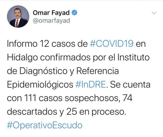InicioDe todo👑🦠 Suma #Hidalgo 12 casos de Covid-19 El Gobernador Omar...