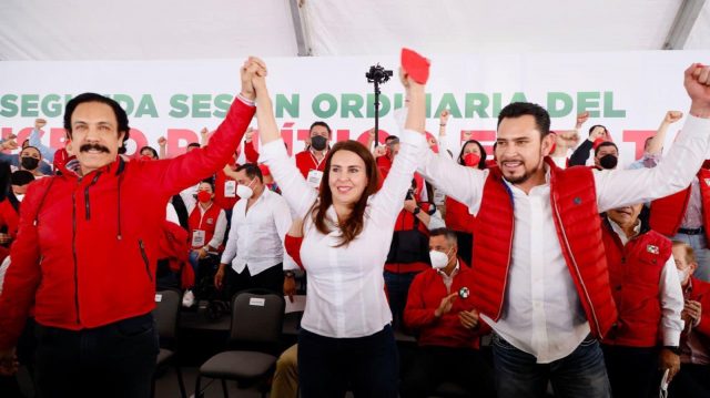 • En Hidalgo, la secretaria general del PRI celebró, junto con el líder nacional, Alejandro Moreno, con los gobernadores Omar Fayad, Alejandro Murat y Alfredo del Mazo, y los coordinadores parlamentarios, Rubén Moreira y Miguel Ángel Osorio Chong, el 93 Aniversario de este instituto político.