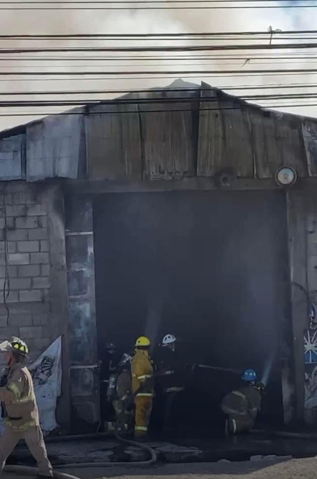 Bomberos trabajan en el control de un incendio que se registr贸 qen una bodega, donde se almacenaban llantas.