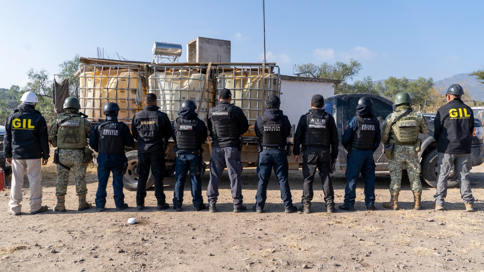 Durante la acción policial, la Secretaría de Seguridad Pública de Hidalgo (SSPH), en coordinación con la PGJEH, la Sedena y personal especializado de Pemex, localizó 93 dosis de marihuana y 43 dosis de cristal. Además, fue asegurada una camioneta con reporte de robo y 15 contenedores con un total de 5 mil 170 litros de hidrocarburo, así como material utilizado para trasvase, entre ellos mangueras de alta presión y equipo de desazolve.