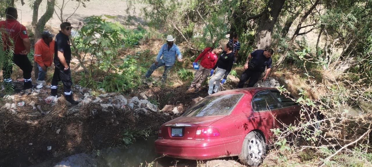 El autom贸vil Mercuri Sable color rojo cay贸 al canal de aguas de riego de este municipio.