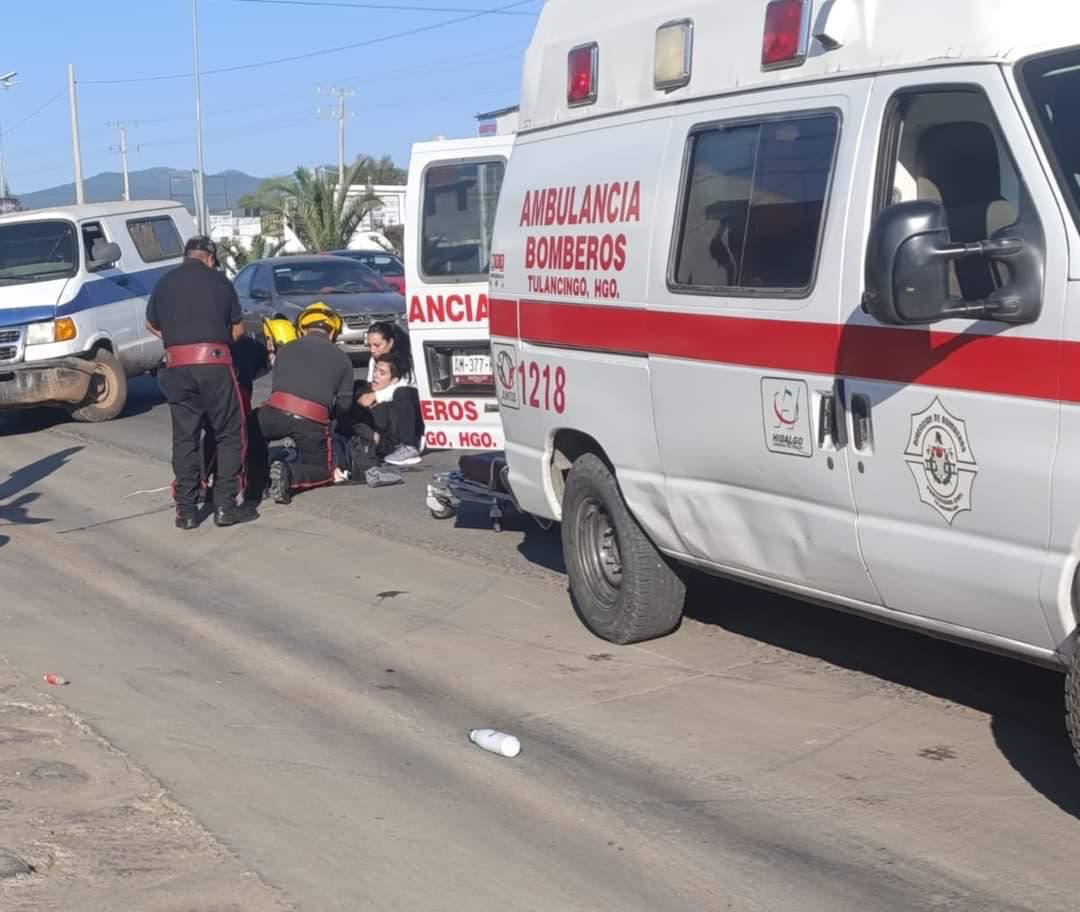 Además, una motocicleta atropelló a un joven en el lugar. La Unidad de Protección Civil 1218, bajo el mando de Luis Pacheco, acudió al sitio para brindar auxilio. De igual forma, la unidad HGO-230 de la Cruz Roja, al mando de Samuel Santos, trasladó a Devis Gómez Gallegos, de 19 años, al IMSS. El joven presentaba una probable fractura en la muñeca derecha y múltiples contusiones.