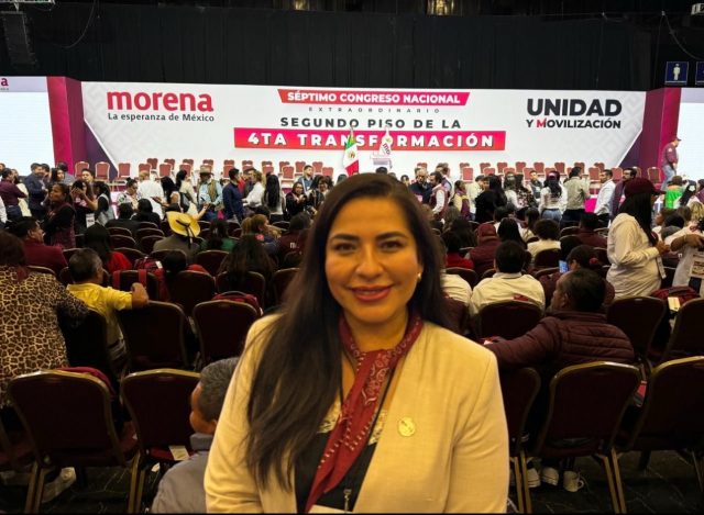 La diputada hidalguense y Consejera Nacional de Morena, Alhely Medina, participó en el Séptimo Congreso Nacional Extraordinario del Movimiento de Regeneración Nacional en el World Trade Center de la Ciudad de México en donde se eligió a la dirigencia nacional del partido para el periodo 2024-2027.