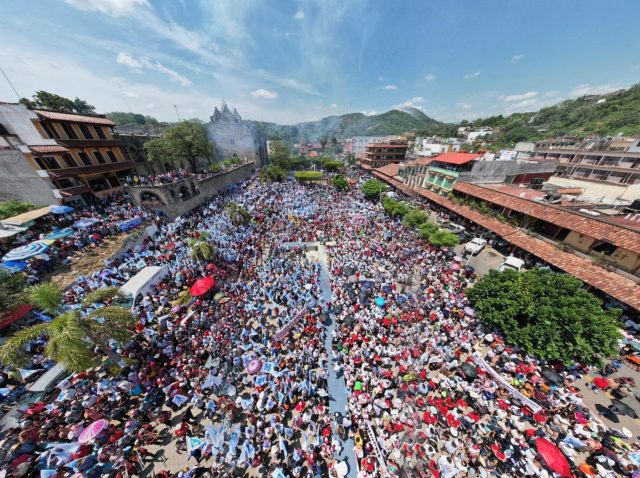 A pesar del intenso calor, la gente de 19 municipios de la Huasteca y Sierra Alta de Hidalgo acudió al llamado de quien será la próxima gobernadora pues contrario al candidato de Morena aquí no fue necesario traer a personas acarreadas de otros estados para llenar el lugar.