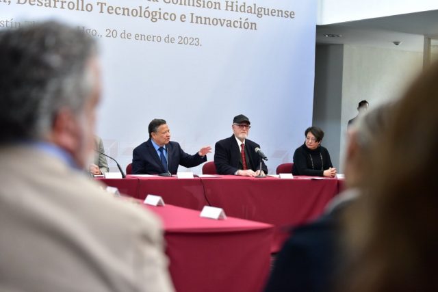 Menchaca Salazar celebró que esta comisión sea un espacio de encuentro entre representantes de instituciones académicas, dependencias de gobierno y del sector productivo, en donde a partir de ahora, se utilizarán todos los mecanismos que marca la ley para avanzar en el proyecto de transformación estatal que impulse el desarrollo tecnológico, la innovación y el conocimiento científico para resolver problemas públicos como la contaminación en la región de Tula, el desarrollo agropecuario y la incorporación al mercado laboral de nuevas generaciones que egresan de instituciones educativas de nivel superior.