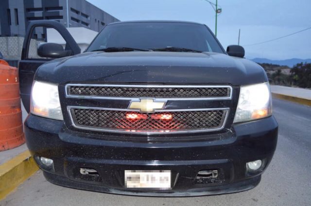 A bordo de una camioneta con implementos de uso exclusivo de corporaciones de seguridad un hombre fue detenido por agentes de la Secretaría de Seguridad Pública de Hidalgo en el bulevar La Providencia, en Mineral de la Reforma.