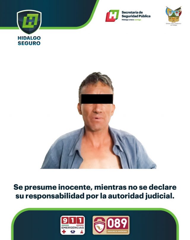 Un individuo, presuntamente relacionado con la agresión armada a otro hombre en el municipio de Ajacuba, fue asegurado por agentes de la Secretaría de Seguridad Pública de Hidalgo.
