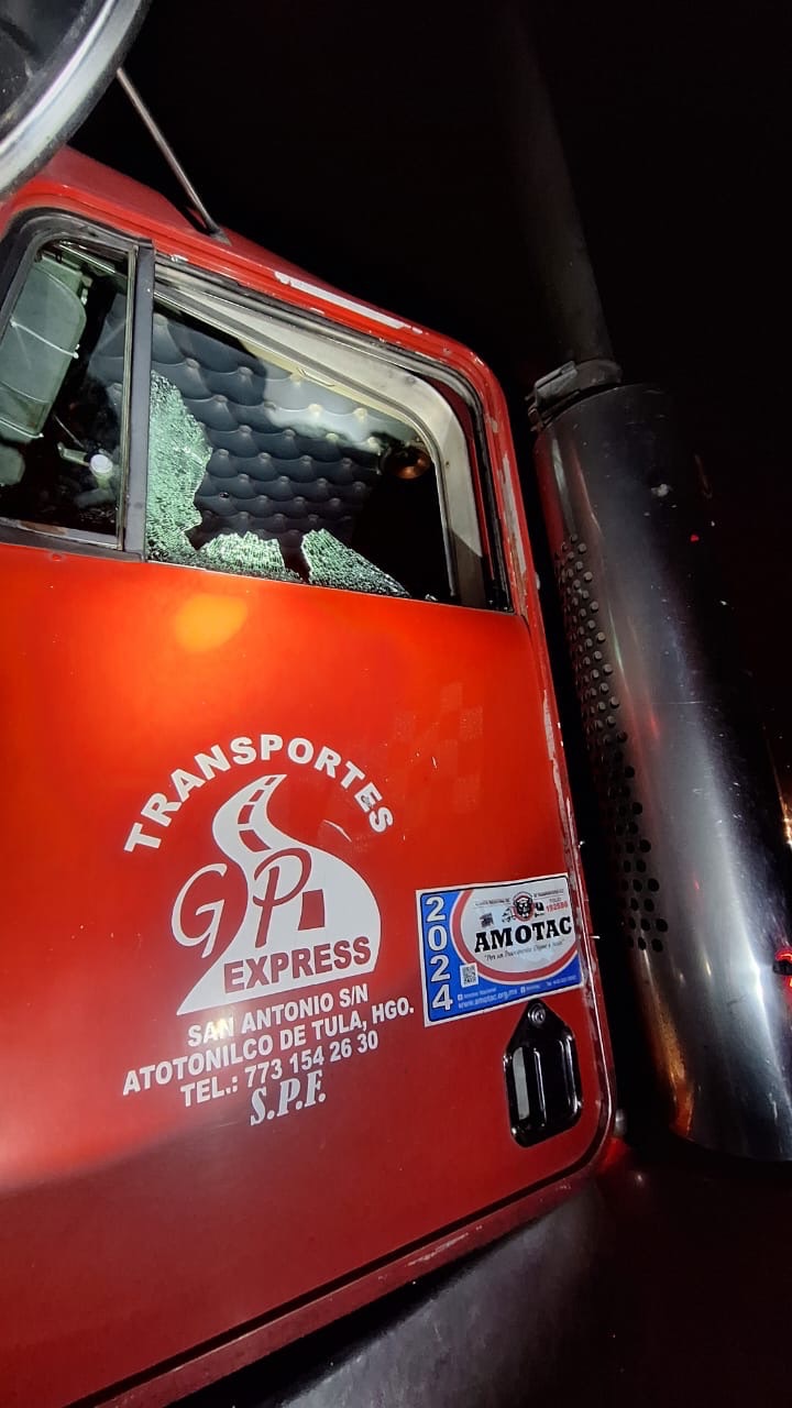 A la altura de la comunidad de Corrales en Tepeji del Río, Hidalgo, el conductor de un tractocamión dio a conocer que un camión fue atacado a disparos mientras iba por la autopista México-Querétaro por ocupantes de una camioneta, con la finalidad de asaltarlo.