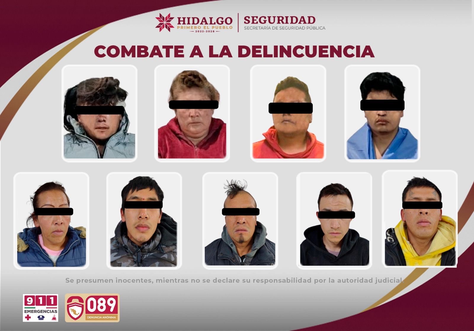 Tras una serie de operativos en Pachuca, Mineral de la Reforma y Tulancingo, la Secretaría de Seguridad Pública de Hidalgo (SSPH) detuvo a nueve personas presuntamente vinculadas con el homicidio de un taxista identificado con las iniciales M. M. G. H.