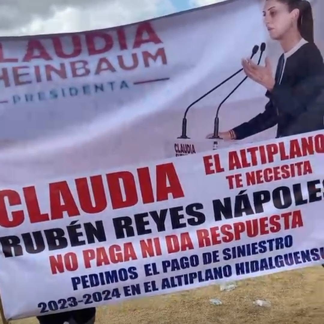 Durante el evento, los inconformes desplegaron una pancarta que acusaba directamente a Rubén Reyes Nápoles, director de Agricultura en Apan, por la falta de cumplimiento en los apoyos prometidos. “Claudia, el Altiplano te necesita”, se leía en el mensaje, que buscaba captar la atención de la mandataria para resolver el problema que afecta a decenas de productores.