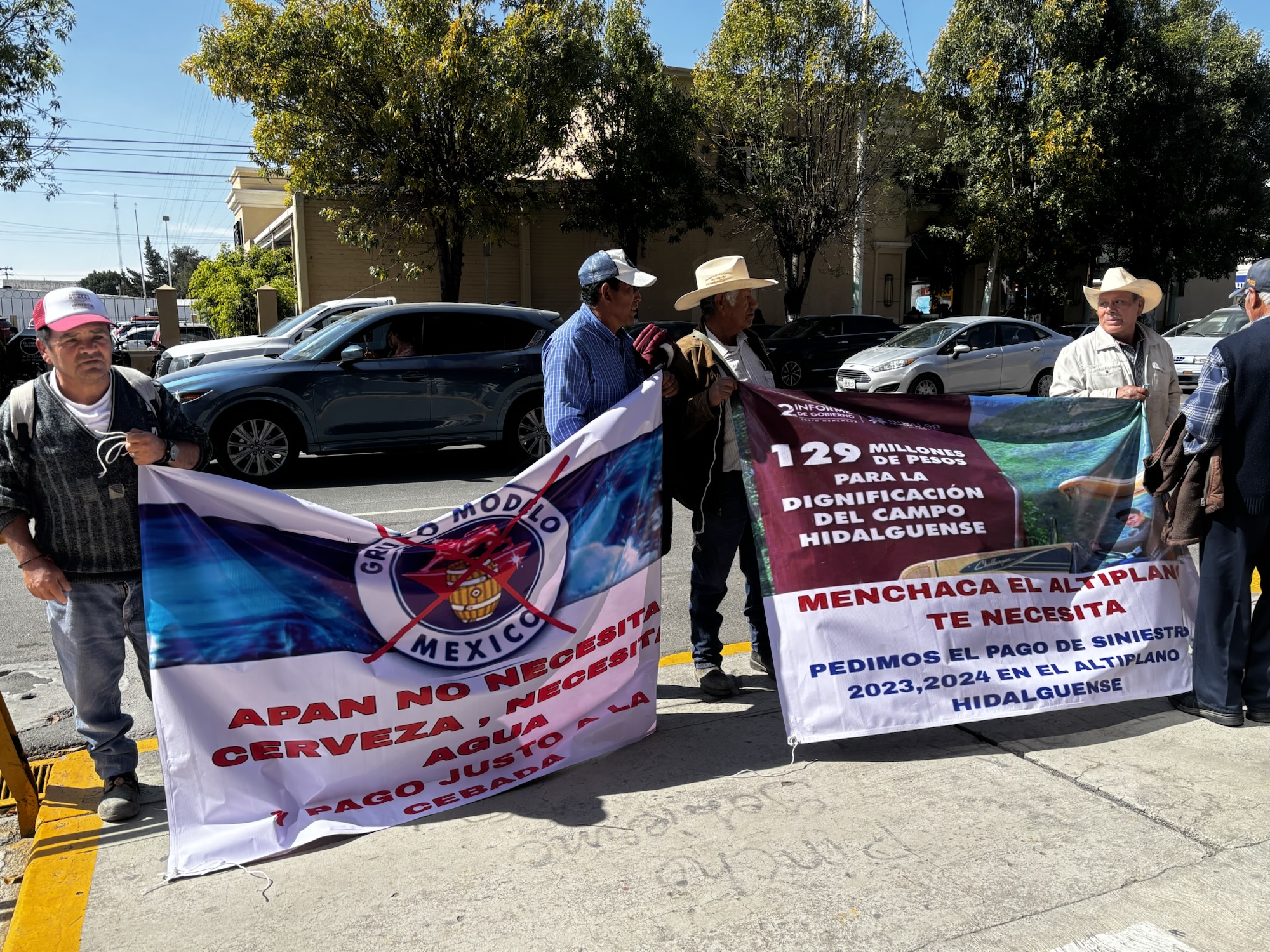 Con mantas que reclamaban “Apan no necesita cerveza, necesita agua” y “Menchaca, el Altiplano te necesita”, los campesinos lograron ser atendidos tras varios minutos de protesta.