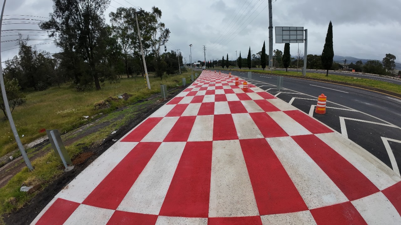 Asimismo, se realizaron trabajos de señalamiento horizontal y vertical en 2.5 kilómetros de la vialidad, que incluyeron rayas continuas y discontinuas en color blanco y amarillo en dos cuerpos de 10.5 metros de ancho cada uno, así como la aplicación de 2,250 metros de raya roja de 40 centímetros de ancho. En esta acción participaron alrededor de 50 trabajadores, generando empleos locales en una obra de mediana escala.