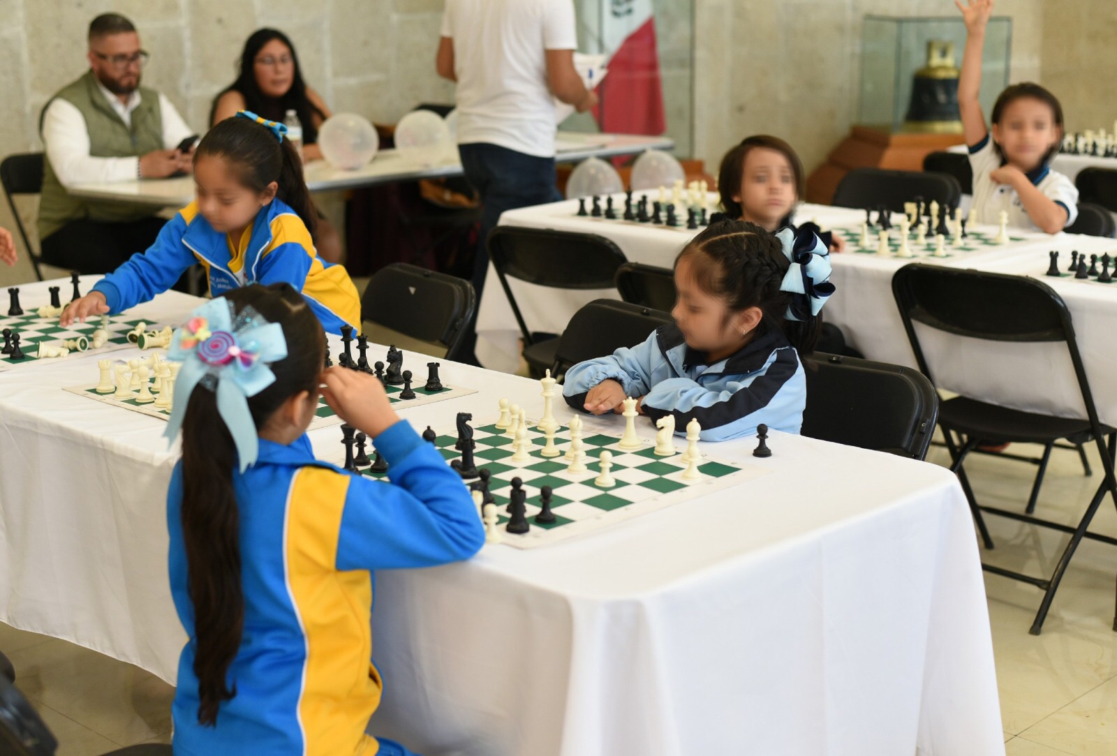 La Asociación de Ajedrecistas, la Escuela Interdisciplinaria de Ajedrez de Hidalgo, y jugadores del club chaturanga(Actopan), colegio, Valladolid, Colegio, Cedrus, Colegio, Montessori, Colegio, Heimdal, demostraron su talento en el juego de ajedrez.