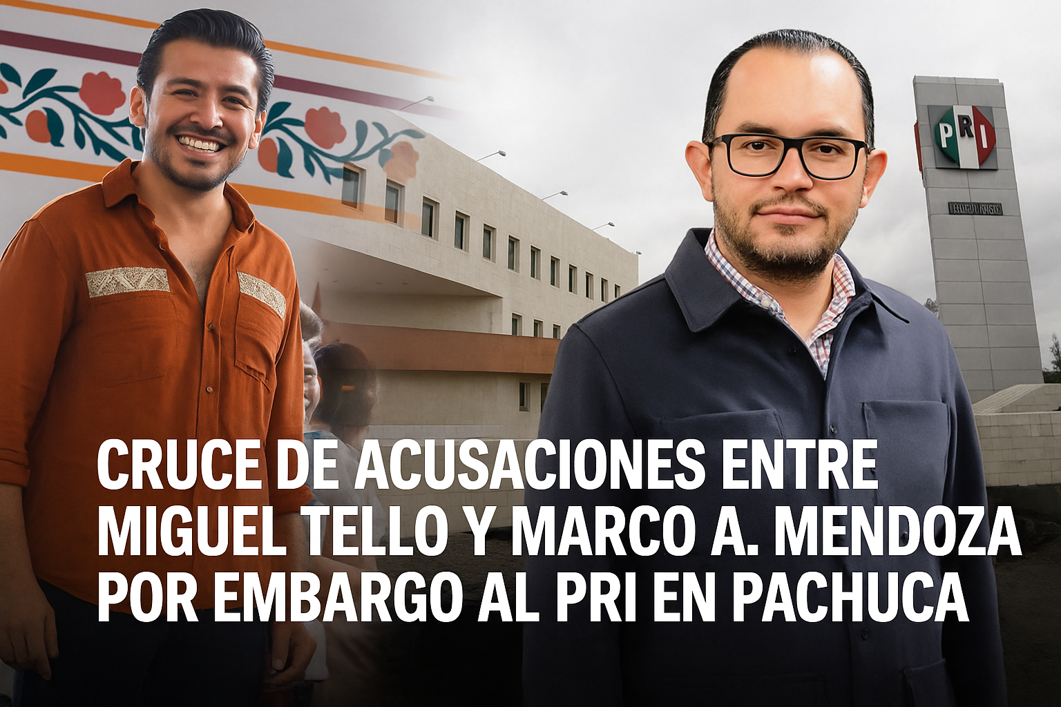 Pachuca, Hgo. – Un intercambio de declaraciones en redes sociales entre el secretario de planeación del estado Miguel Tello y el diputado Marco A. Mendoza Bustamante encendió la polémica política en Hidalgo, después de que el Ayuntamiento de Pachuca embargó bienes del PRI por un adeudo de impuesto predial.