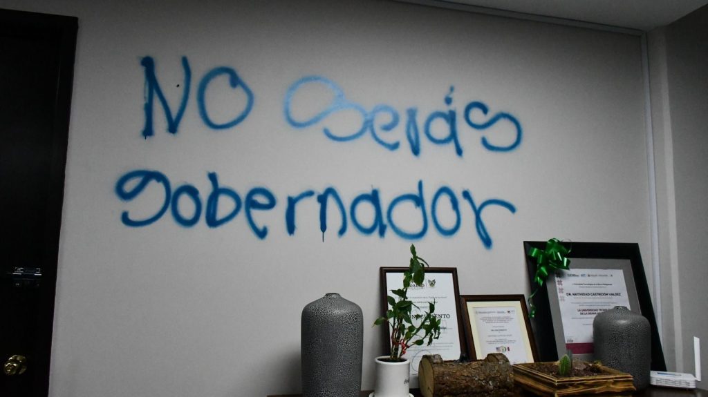 De acuerdo con el reporte oficial, durante la incursión se registraron actos vandálicos en diversas áreas, entre ellos pintas en oficinas incluida la del secretario, además del saqueo de equipo y documentación oficial.