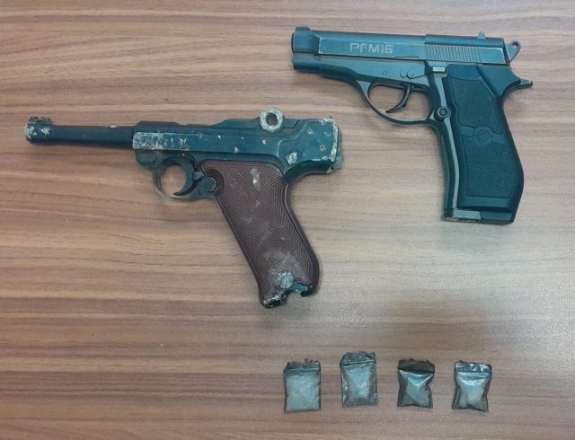 Los sospechosos, quienes responden a las siglas de D. I. L. M., C. A. R. B., M. A. M. S., tenían en posesión un arma de fuego corta nueve milímetros, un arma corta calibre 4.5 milímetros y cuatro dosis de droga sintética “cristal”.