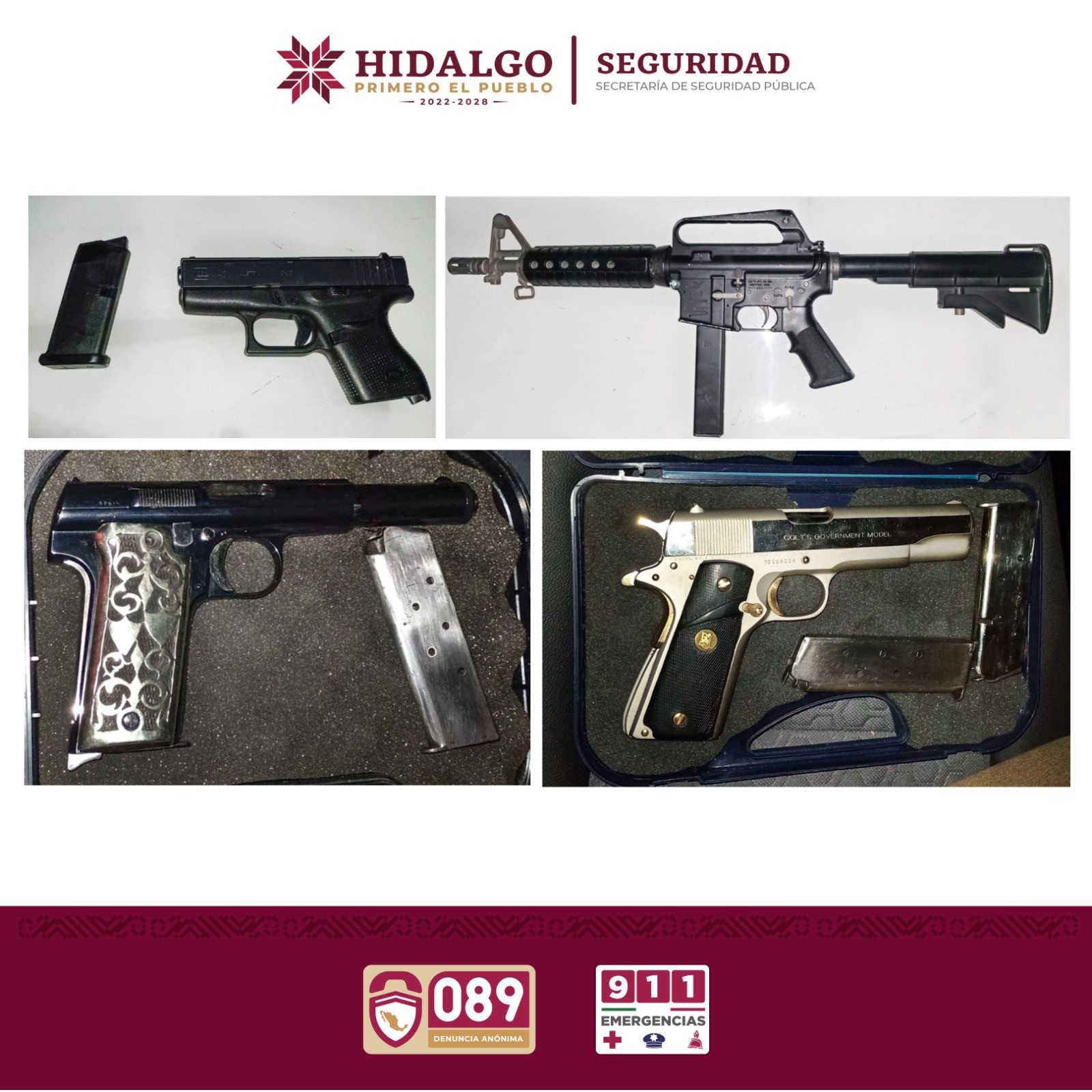 Actopan.- La Secretaría de Seguridad Pública de Hidalgo (SSPH), en coordinación con la Policía Municipal de Actopan, detuvo a tres hombres en posesión de armas de fuego tras recibir un reporte ciudadano que alertó sobre múltiples detonaciones en la colonia Cañada Aviación.