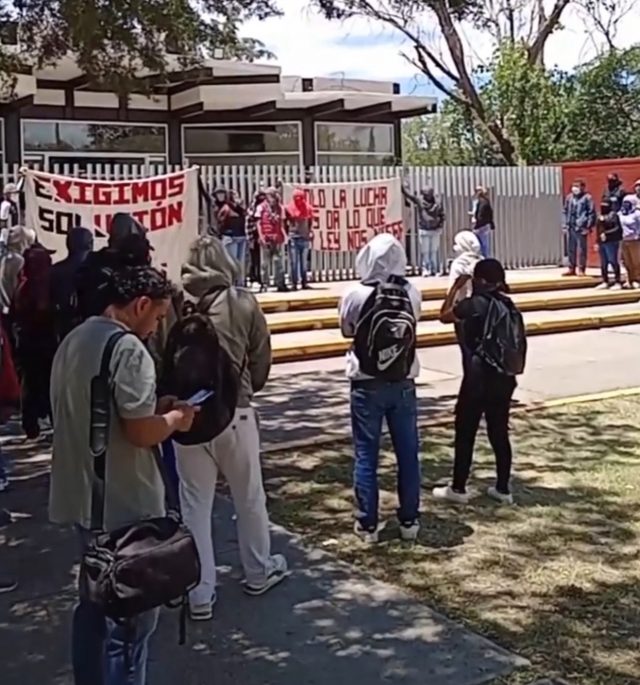 Para evitar una posible irrupción en las instalaciones, elementos antimotines resguardan el edificio, mientras las autoridades evalúan la situación. Los manifestantes, provenientes del plantel ubicado en el municipio de Francisco I. Madero, exigen respuestas claras y acciones concretas por parte de las autoridades educativas a sus demandas.