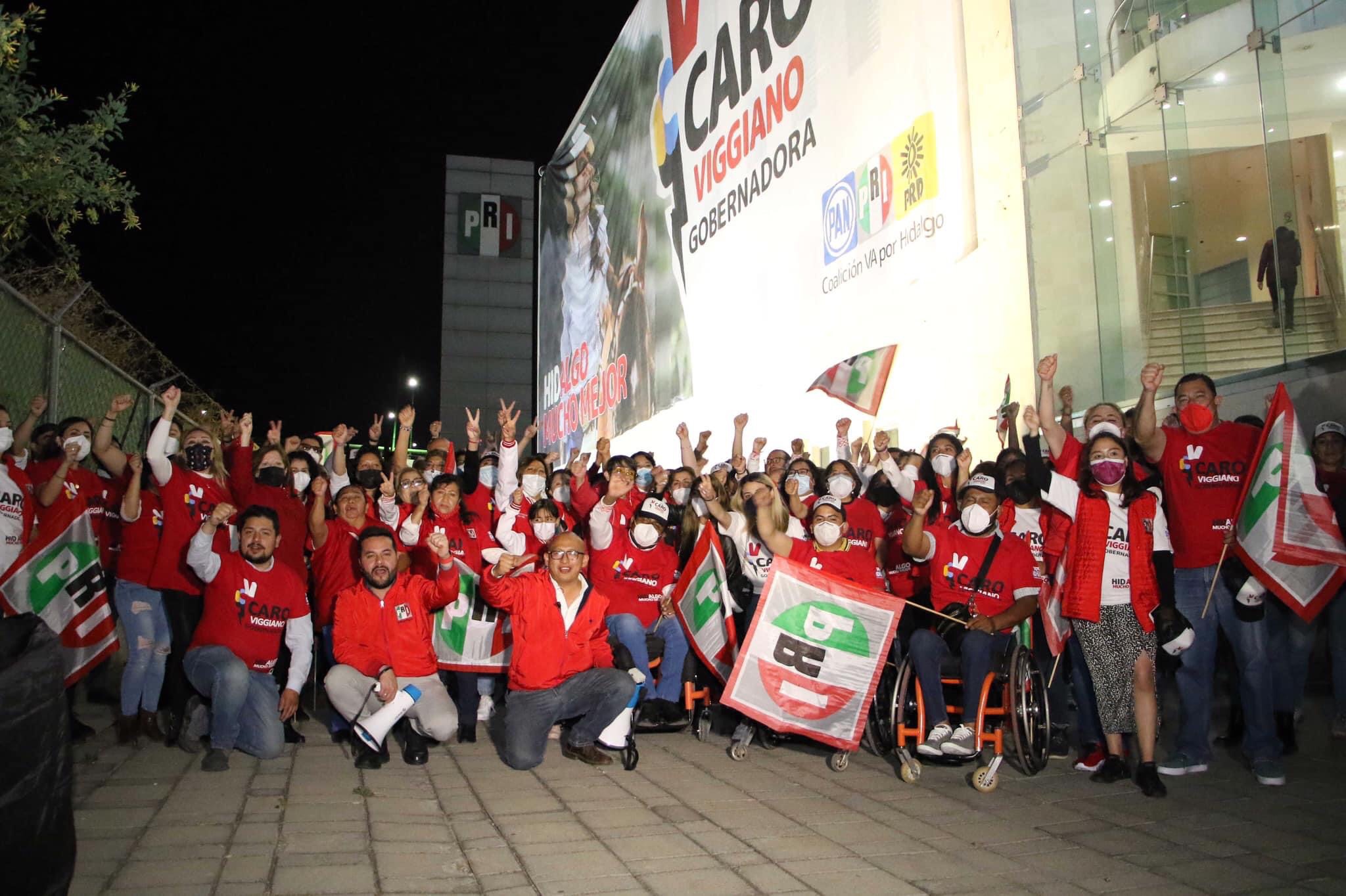 El Partido Revolucionario Institucional (PRI), que encabeza el presidente Julio Valera Piedras y la secretaria general Yarely Melo Rodríguez, llevó a cabo de manera simultánea arranques de campaña en los 84 municipios de la entidad, en donde cada Comité Municipal desplegó de manera coordinada imágenes de la candidata de la coalición Va por Hidalgo, Carolina Viggiano en las sedes que ocupan los Comités Municipales.