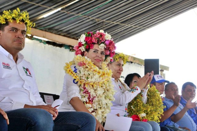 Por último, los miles de asistentes y simpatizantes de la alianza PRI-PAN-PRD que acudieron a la cabecera municipal de las diferentes comunidades de este municipio, corearon al unísono en varias ocasiones en la lengua nahualt, (Carolina, nikaj nieua; Carolina, es de aquí).