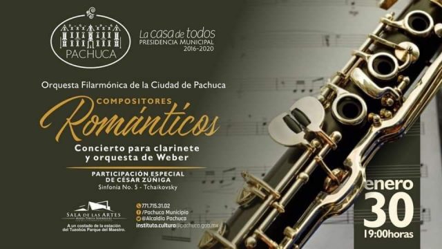 Con música de autores europeos la Orquesta Filarmónica de Pachuca que dirige Marco Antonio Orozco, ofrecerá su primer concierto de la temporada 2019 denominado Compositores Románticos con la interpretación de la sinfonía # 5 del ruso Piotr Ilich Tchaikosky y el Concierto para clarinete y orquesta del alemán Kark María von Weber.