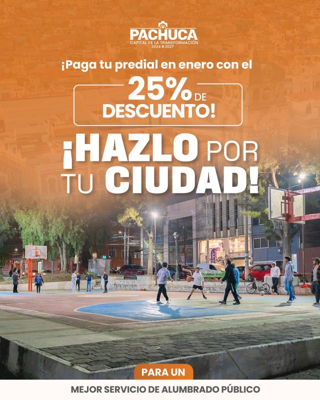 Durante todo el mes de enero, el Ayuntamiento de Pachuca encabezado por el alcalde, Jorge Reyes ofrece un 25% de descuento en el pago del impuesto predial.