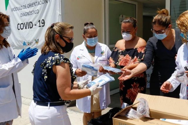 El personal médico es de los más expuestos a la pandemia causada por el coronavirus, para colaborar con este sector la alcaldesa de Pachuca, Yoli Tellería, entregó material en centro de salud.
