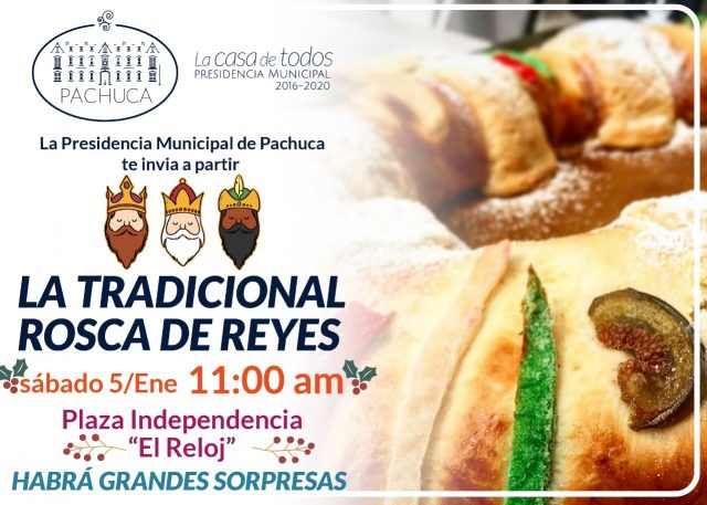 Inicio Municipios Este sábado no te puedes perder la tradicional Rosca de Reyes, la... Este sábado no te puedes perder la tradicional Rosca de Reyes, la presidencia municipal de #Pachuca te invita en punto de las 11 de la mañana 2 de enero de 2019 FacebookTwitterPinterestWhatsApp