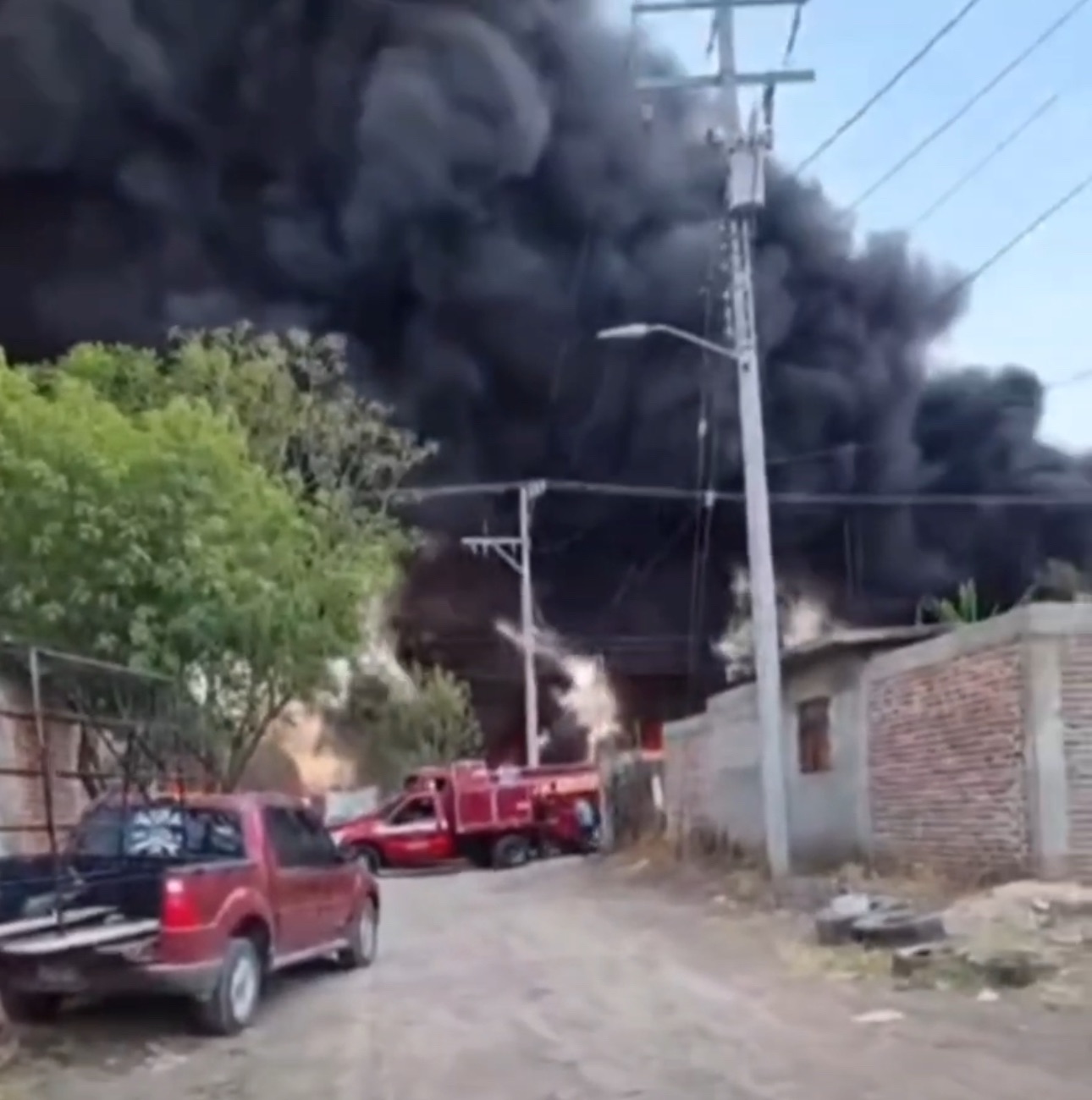 Celaya, Guanajuato.– Un incendio de gran magnitud se desató este sábado en una maderería ubicada en la comunidad de Pelavacas, provocando una espesa nube de humo negro visible desde distintos puntos de la ciudad.