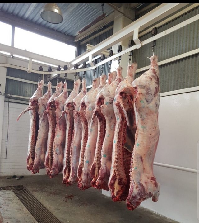 La carne no toca el piso, todo es aéreo, todo el proceso es sin contaminación con paredes ni con techos ni con excremento, la carne es enjuagada así como se verifica el transporte donde irá la carne.
