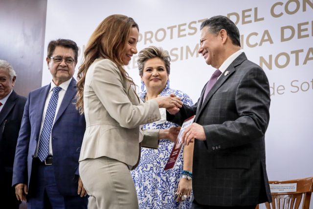El gobernador Julio Menchaca Salazar, en su calidad de titular del Ejecutivo estatal, tomó protesta a las y los integrantes del Consejo Directivo Interino 2022-2024 del Colegio de Notarios, y entregó simbólicamente documentos de identificación.