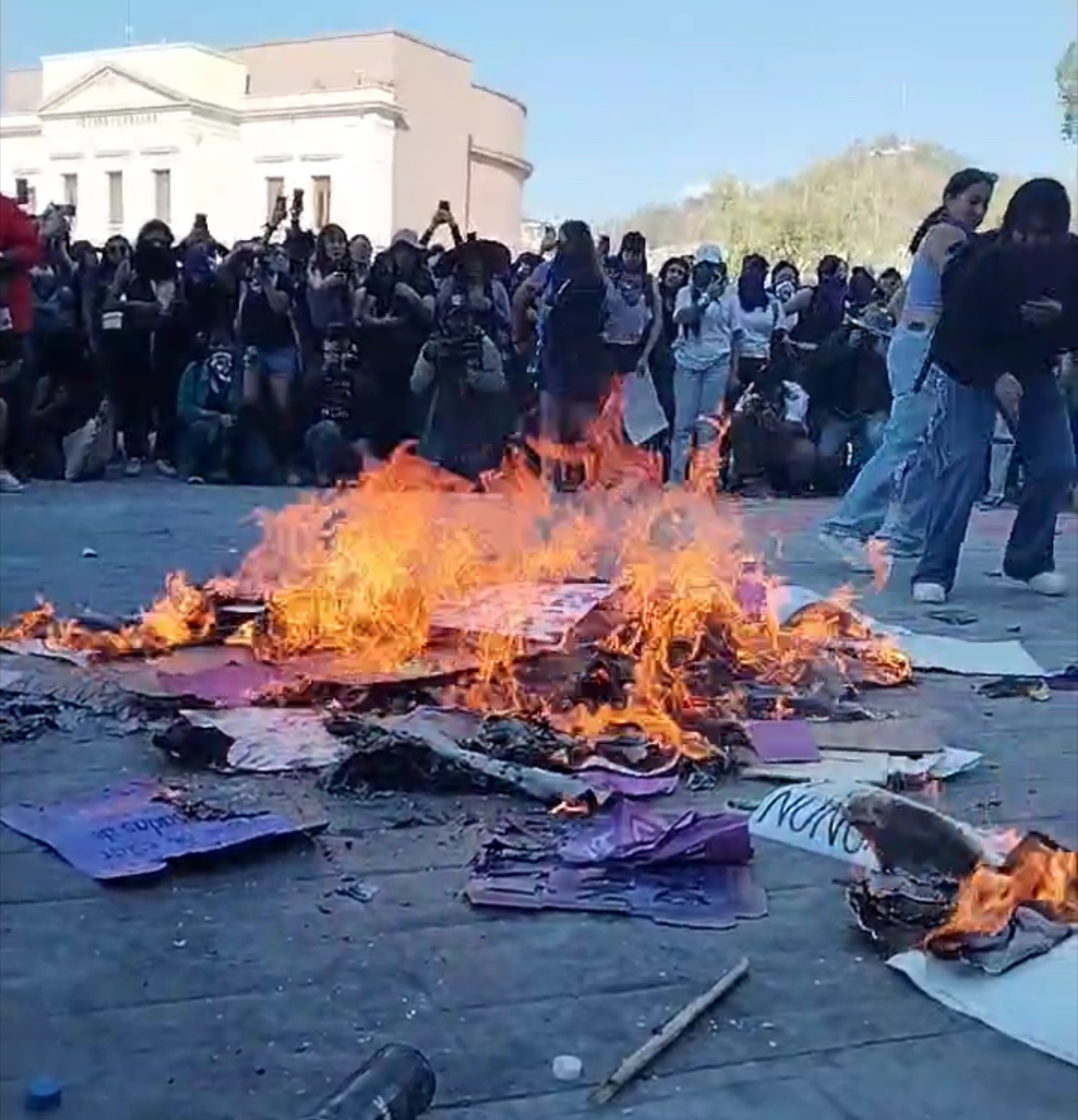 Las participantes en la marcha partieron de Plaza Juárez y recorrieron diversas calles de la ciudad. Sin embargo, al regresar a la plaza, fueron recibidas por un grupo de granaderos. Tras un enfrentamiento con los agentes de seguridad, las manifestantes lograron romper la barrera y derribar las vallas de protección del recinto gubernamental.