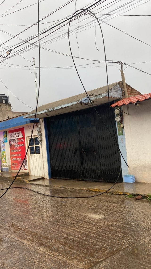 🚧 El suceso tuvo lugar en la calle Pedro María Rangel, la avenida principal de ingreso a la colonia San Isidro, Santiago Tulantepec. ‼️ Por precaución, la zona fue acordonada por elementos de la Dirección de Seguridad Pública, en espera de la llegada de personal de la Comisión Federal de Electricidad (CFE) para realizar las maniobras necesarias.