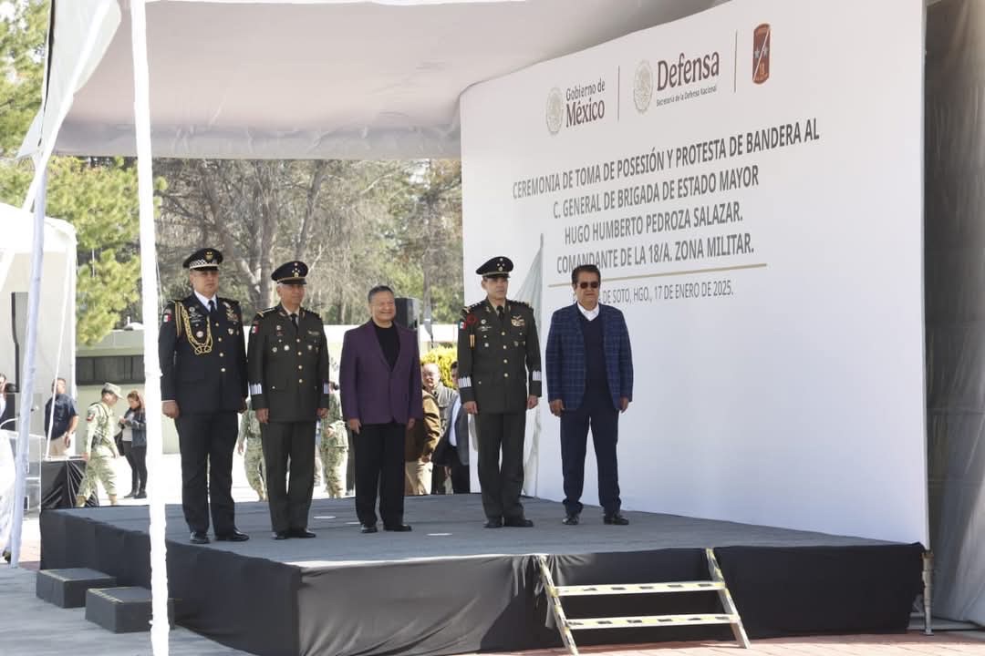 Este viernes 17 de enero se llevó a cabo la toma de posesión y protesta de bandera del General Brigadier Hugo Humberto Pedroza Salazar, quien asumió el cargo como nuevo comandante de la 18va Zona Militar en Pachuca.