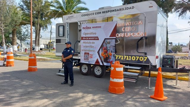 Con el propósito de vigilar la celebración del Día de Muertos en Pachuca, diversas secretarías del municipio intervienen a fin de garantizar la seguridad y comodidad de los asistentes en un ambiente de paz y tranquilidad.