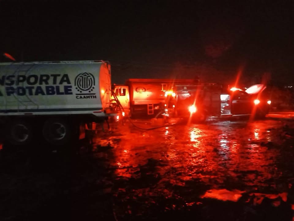 Como parte del operativo, la Comisión de Agua y Alcantarillado del Municipio de Tizayuca (CAAMTH) brindó apoyo con unidades de pipas que, desde la madrugada, han trasladado más de 40 mil litros de agua para reforzar las acciones de combate al fuego encabezadas por Protección Civil y bomberos.