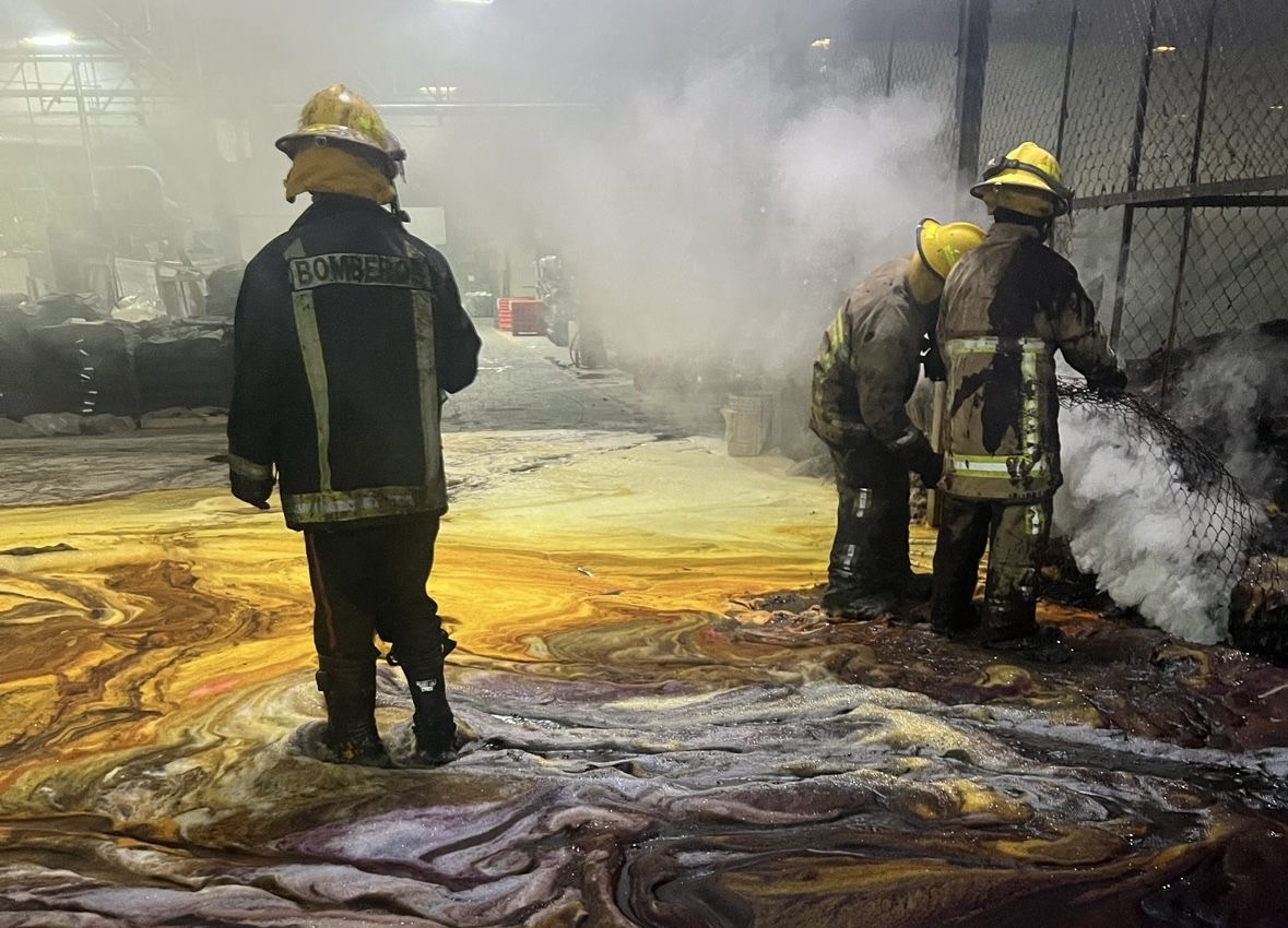 El fuego, reportado a las 01:07 horas, consumió una nave de tintorería y teñido, así como un almacén de aproximadamente 12 x 20 metros donde se resguardaban productos químicos para teñido.