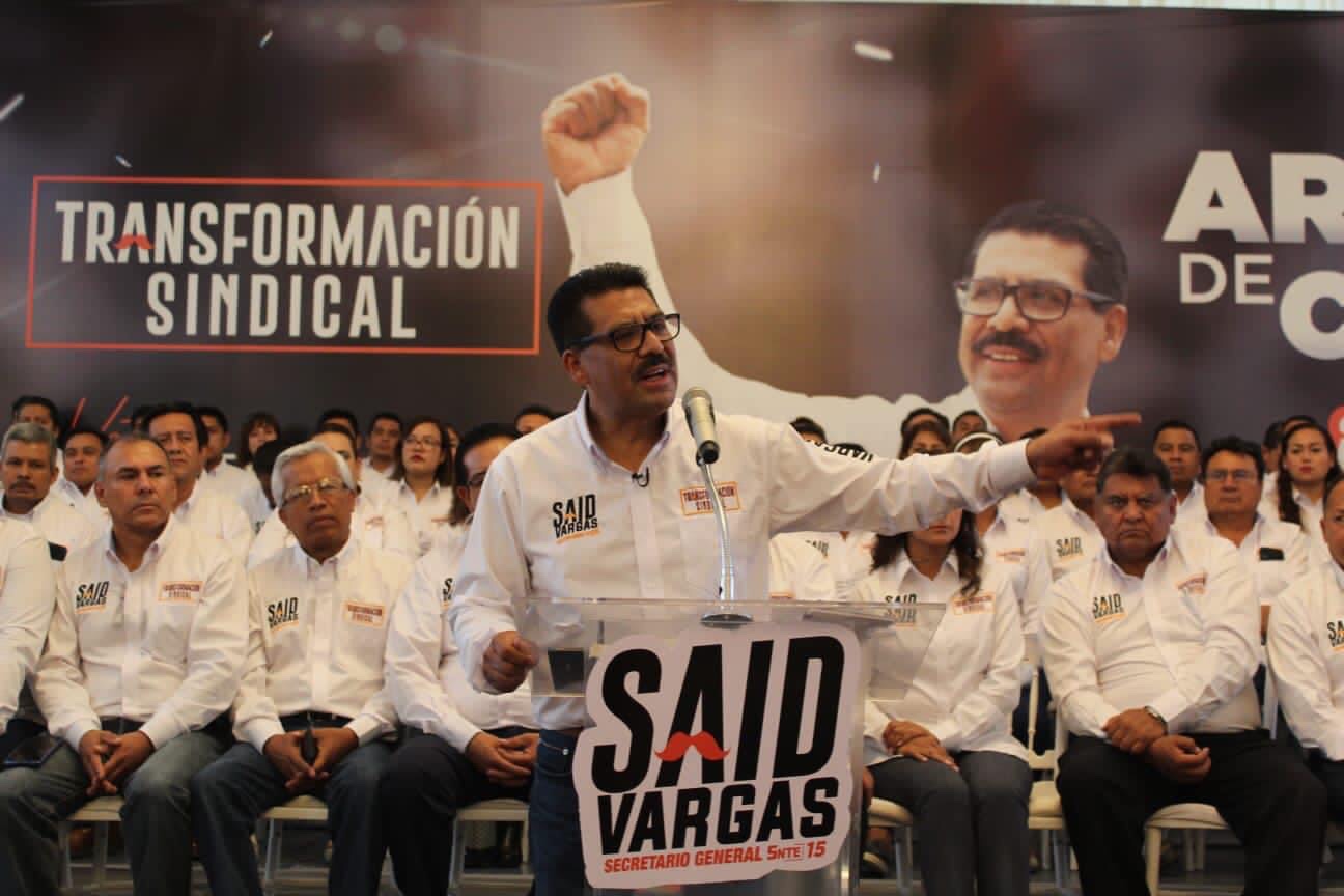 En rueda de prensa ofrecida este día en los salones Perla en Pachuca, el aspirante a dirigir la sección 15 del Sindicato Nacional de Trabajadores de la Educación (SNTE) Said Vargas Saenz, presentó a los integrantes de su planilla y celebró que el magisterio por fin podrá elegir a sus representantes.