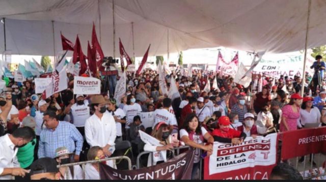 En este acto proselitista el candidato estuvo acompañado por César Cravioto Romero, delegado nacional de Morena en Hidalgo; Sandra Ordóñez Pérez, presidenta del Comité Directivo Estatal de Morena; Sergio Hernández Hernández, presidente del Comité Directivo Estatal del PNAH, así como del senador Navor Rojas Mancera.