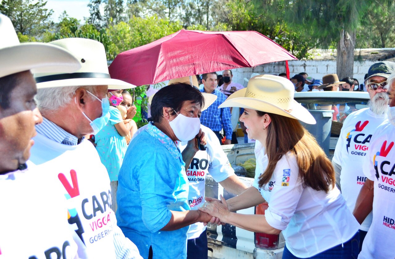 Antes, en El Arenal, Viggiano Austria se reunió con productores de barbacoa, nopal y agricultores de las 12 comunidades que conforman este municipio. Ante cientos de simpatizantes la candidata destacó el trabajo que ha realizado en diferentes encomiendas que ha desempeñado lo cual, dijo, le da la experiencia necesaria para saber resolver la problemática con propuestas de trabajo para desarrollar un plan sexenal. “Es así, cómo se convencen a la sociedad y no colgándose de imágenes”, apuntó.
