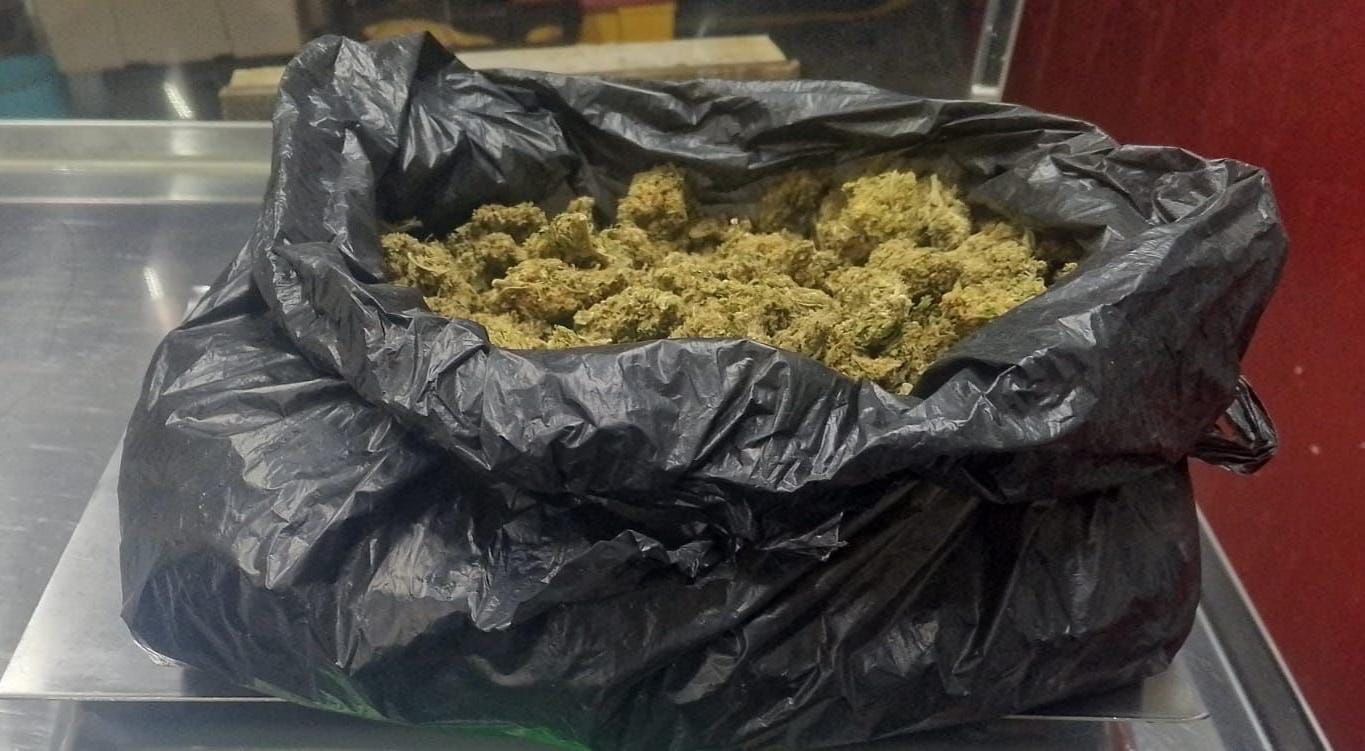 Tras realizarle una revisión de seguridad, como marcan los protocolos de actuación policial, le fue detectada una bolsa negra en cuyo interior había medio kilo de hierba verde con características propias de la marihuana.