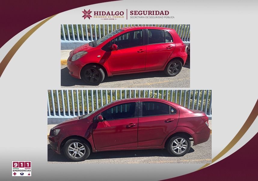 Se trata de un vehículo Chevrolet Sonic, color guinda y un Toyota Yaris, color rojo, identificados por estar posiblemente implicados en el robo a un consultorio de la calle de Abasolo, municipio de Pachuca, en días pasados, donde los ladrones sustrajeron una computadora, equipo de ultrasonido y medicamentos controlados.