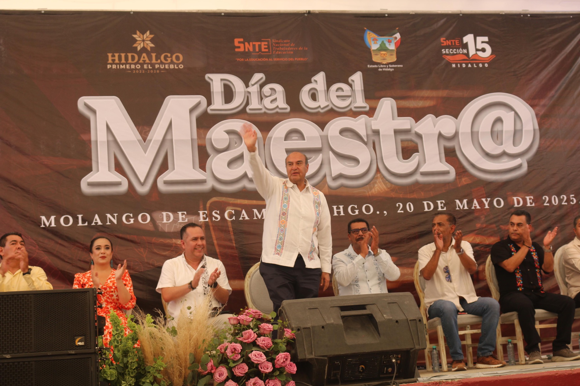 El secretario de Educación Pública de Hidalgo, Natividad Castrejón Valdez, felicitó a las y los docentes por su invaluable labor. Indicó que, con la Nueva Escuela Mexicana (NEM), se fortalece el papel de los maestros como profesionales y líderes educativos en sus comunidades, revalorizando su función con pleno respeto a sus derechos, a partir de su desarrollo profesional, mejora continua y vocación de servicio.