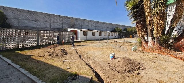 La obra que lleva un avance aproximado del 20 por ciento, consiste en la rehabilitación del drenaje sanitario, pintura en muros exteriores e impermeabilizante, así como de la barda perimetral y el acceso principal adicho centro.